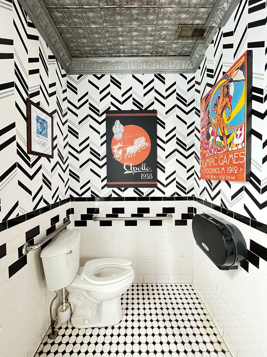 Over the next several months, I had my most trusted fellow contractors in and out of the space to build, stain, paint, repair, wallpaper, and install. I had created renderings of what I saw in my head to get Nick’s approval, but even I wasn’t prepared for just how perfectly it all came together. From the list below, it’s hard to imagine it being cohesive, but if you’ve been to Niko’s, you know the space just WORKS. I attribute that to the beauty of the following: